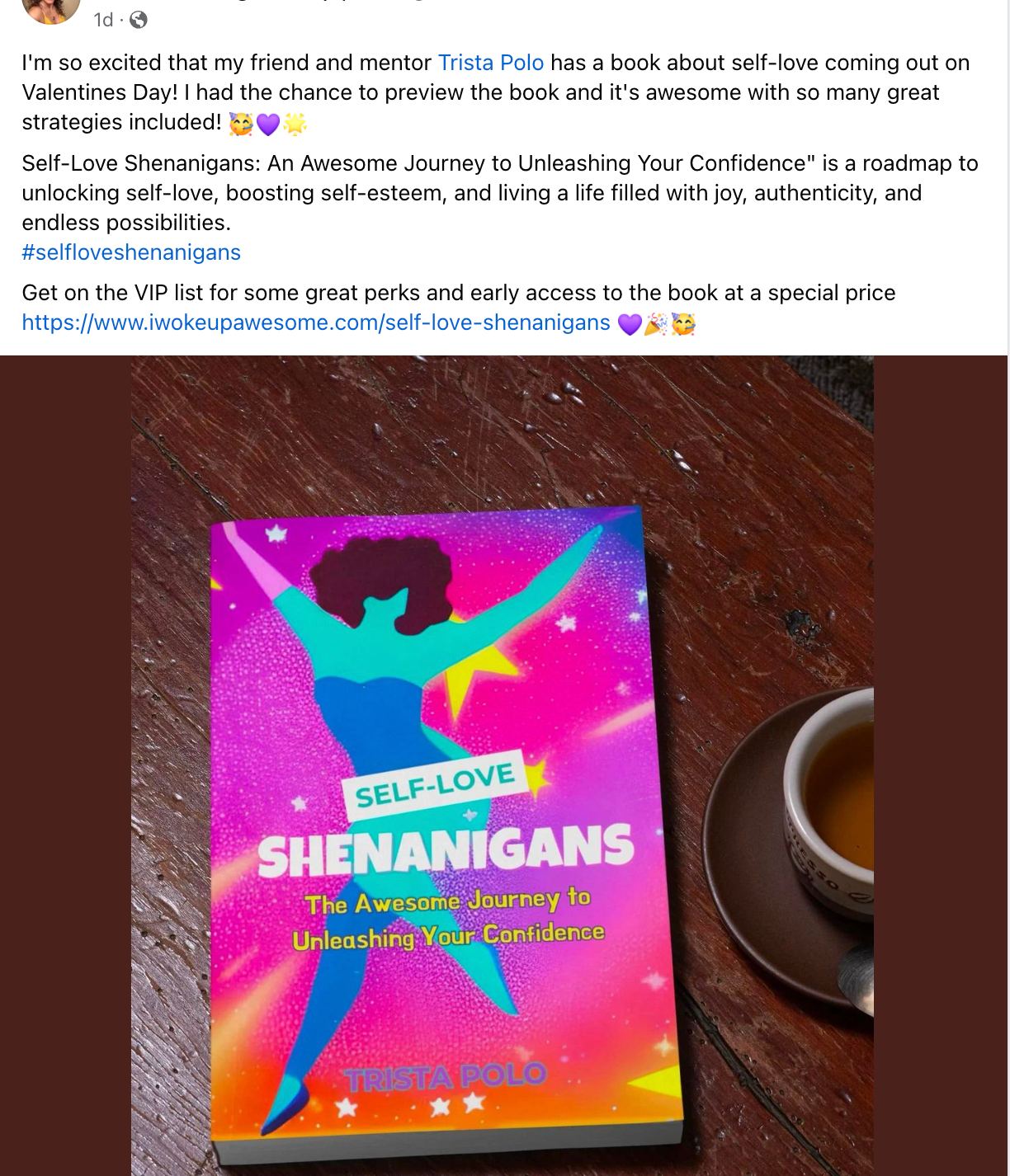 If you would like to share the link to get special VIP perks like the launch party invite, access to the book before anyone else, special introductory price, gifts, and more you can include this link to spread the self-love - https://www.iwokeupawesome.com/self-love-shenanigans