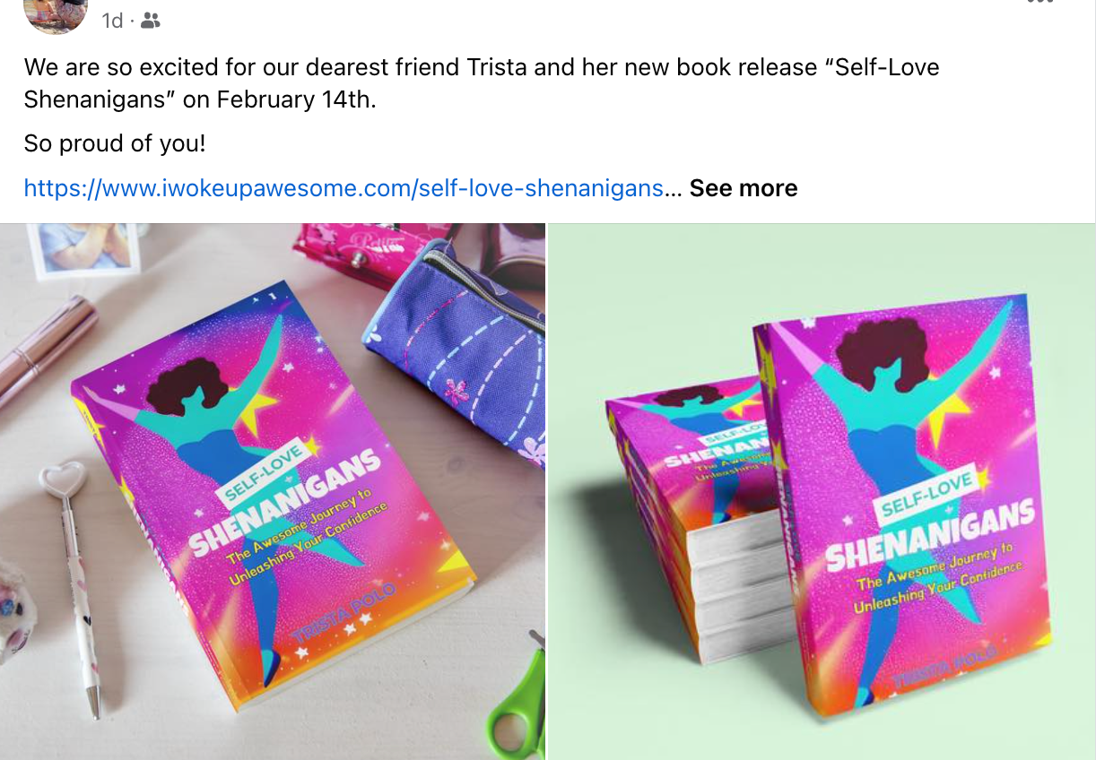 I can't wait to get a new book coming out on Valentine's Day! "Self-Love Shenanigans: The Awesome Journey to Unleashing Your Confidence" by Trista Polo is a delightful roadmap to unlocking self-love, boosting self-esteem, and living a life filled with joy, authenticity, and endless possibilities. Trista made some great perks available for VIP readers including first access to the book at a very special price. Check it out here - https://www.iwokeupawesome.com/self-love-shenanigans #selfloveshenanigans #comingsoon #valentinesday