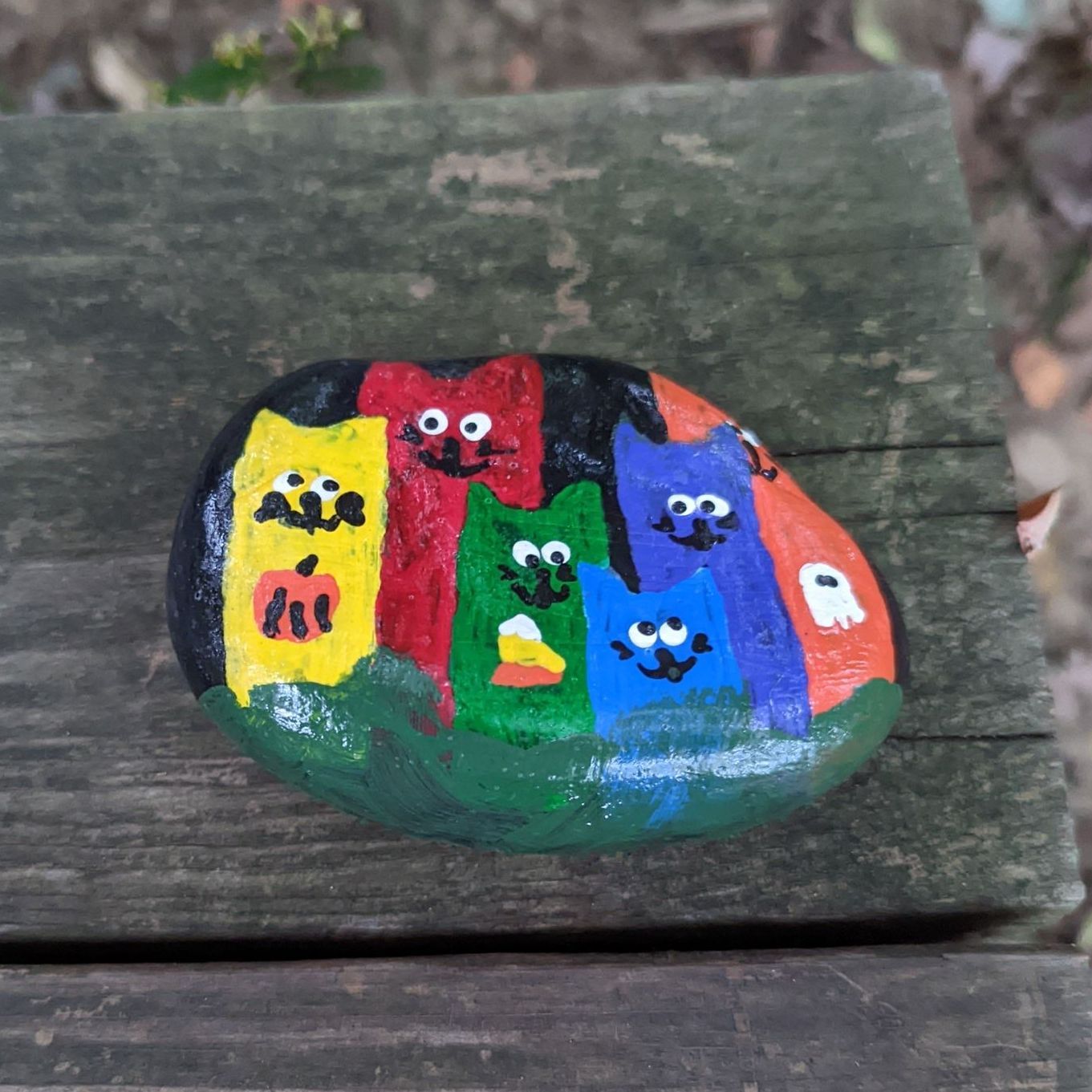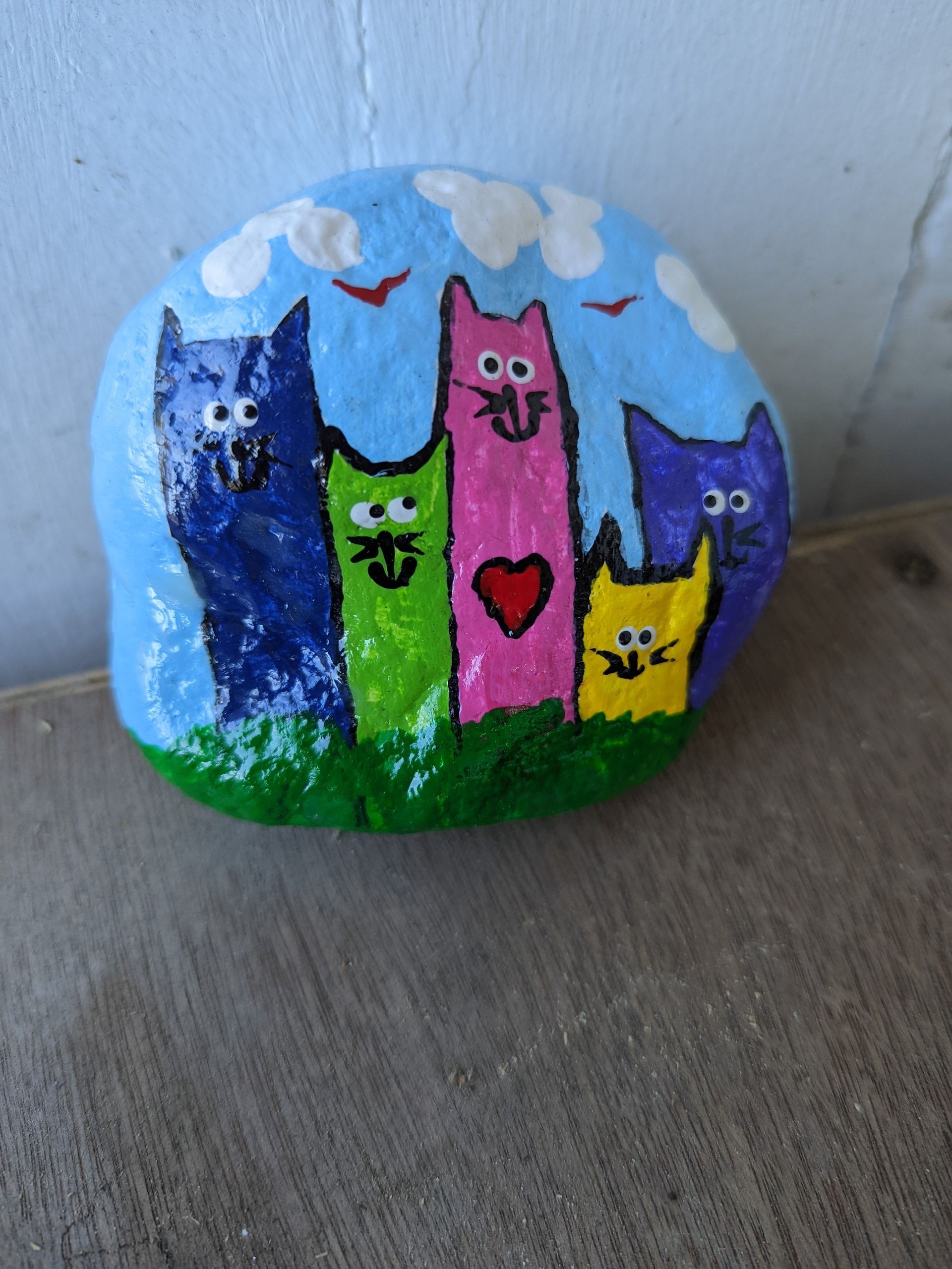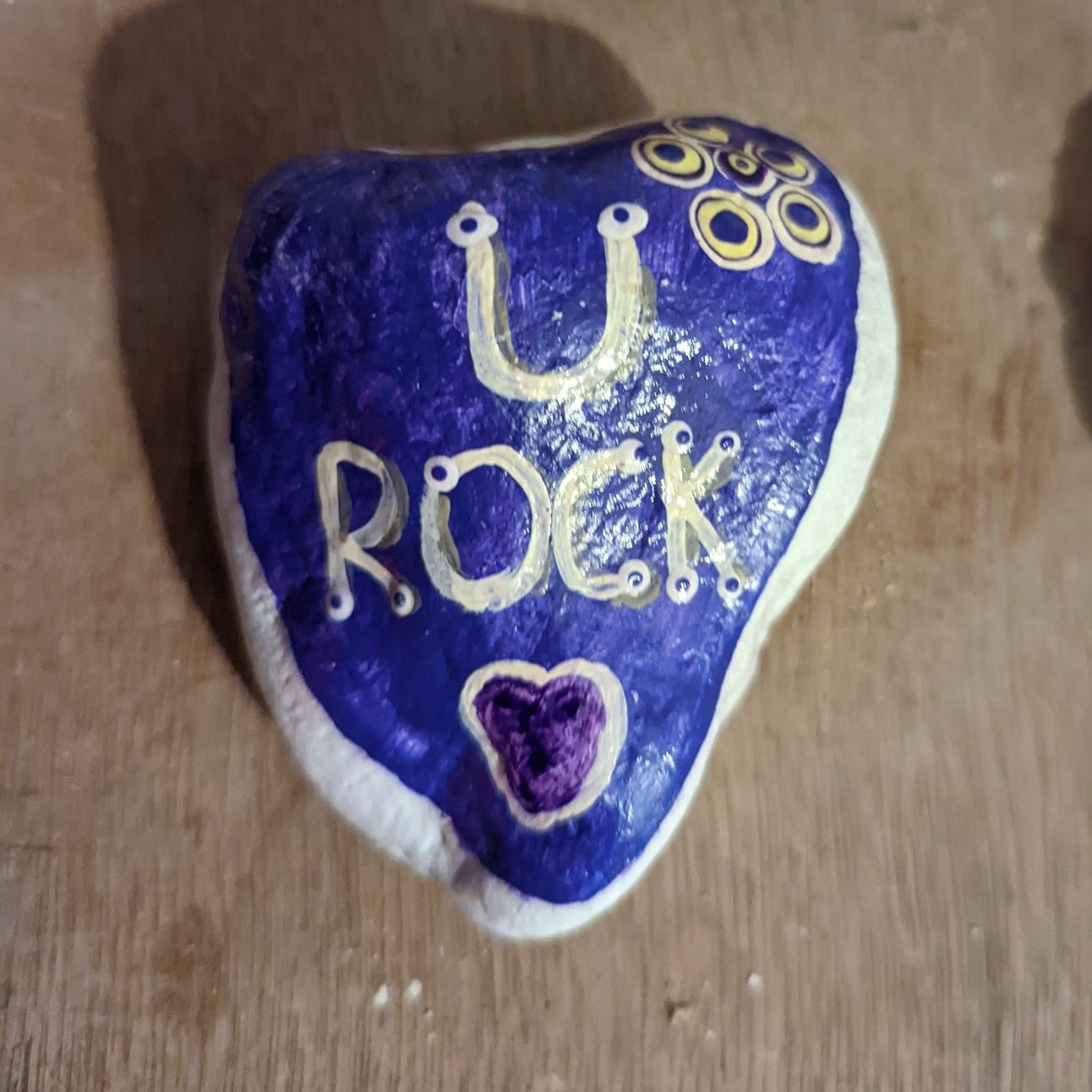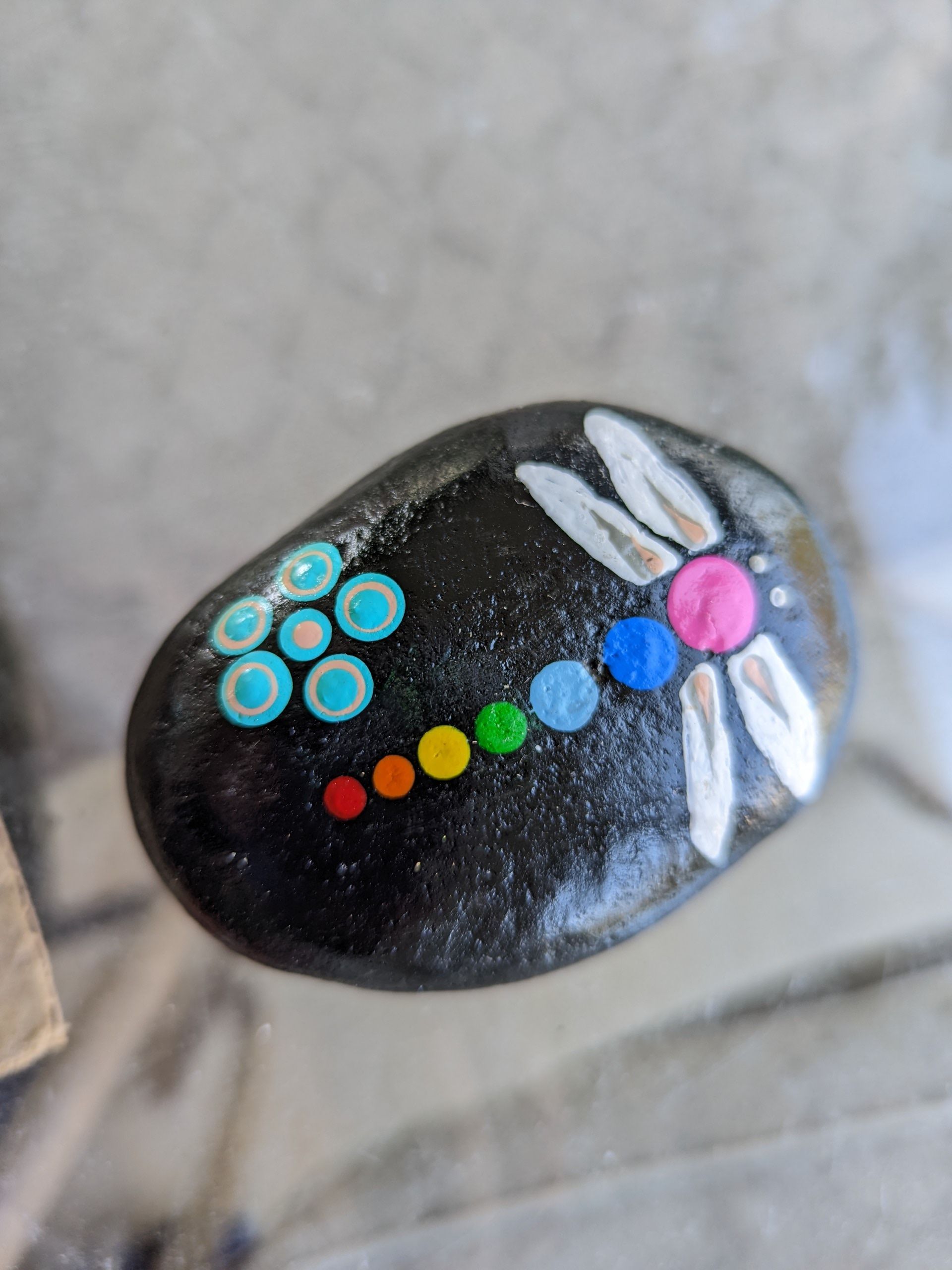 My husband and I recently moved to North East, MD and love living here. We can walk to 12 restaurants and 2 beautiful parks from our house. We walk our dog every morning and love sitting on our porches watching the world go by. On one of our first walks I found a rock peeking out from the landscaping the lines Main St. I did a little digging and found out I could move it or keep it. If I kept it, I was supposed to replace it. This was my first time finding a rock and I loved the idea and the community! I have since joined a few rock painting groups and enjoy painting some of my own. I usually hide them in my own town, but when I venture into other areas I will hide them there as well. And of course, I always have a rock or two with me in case I ever find one in the wild that I would like to add to my personal collection.