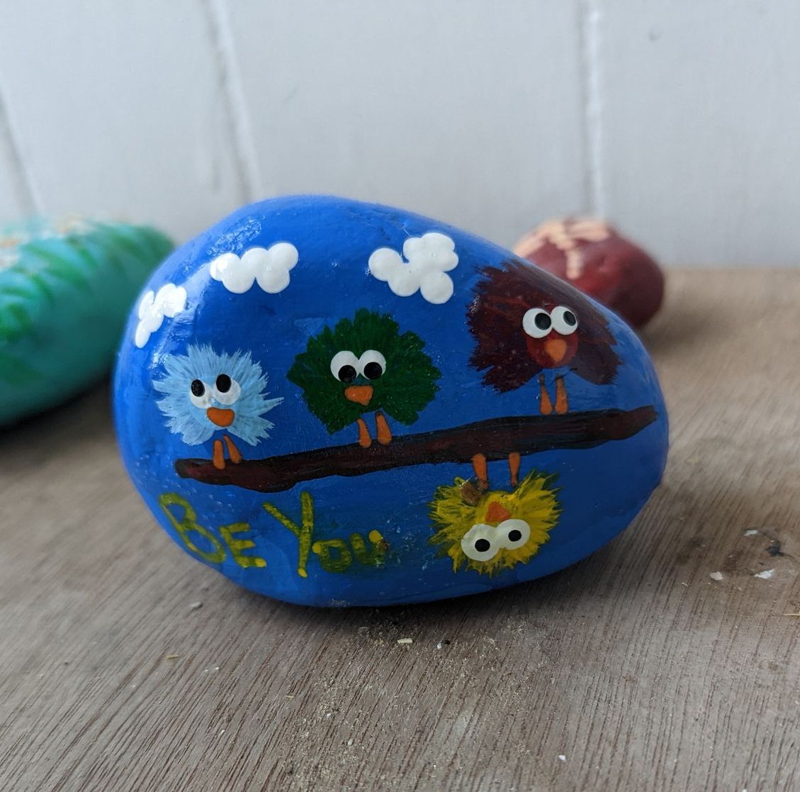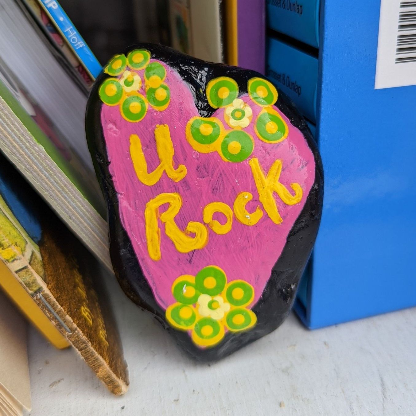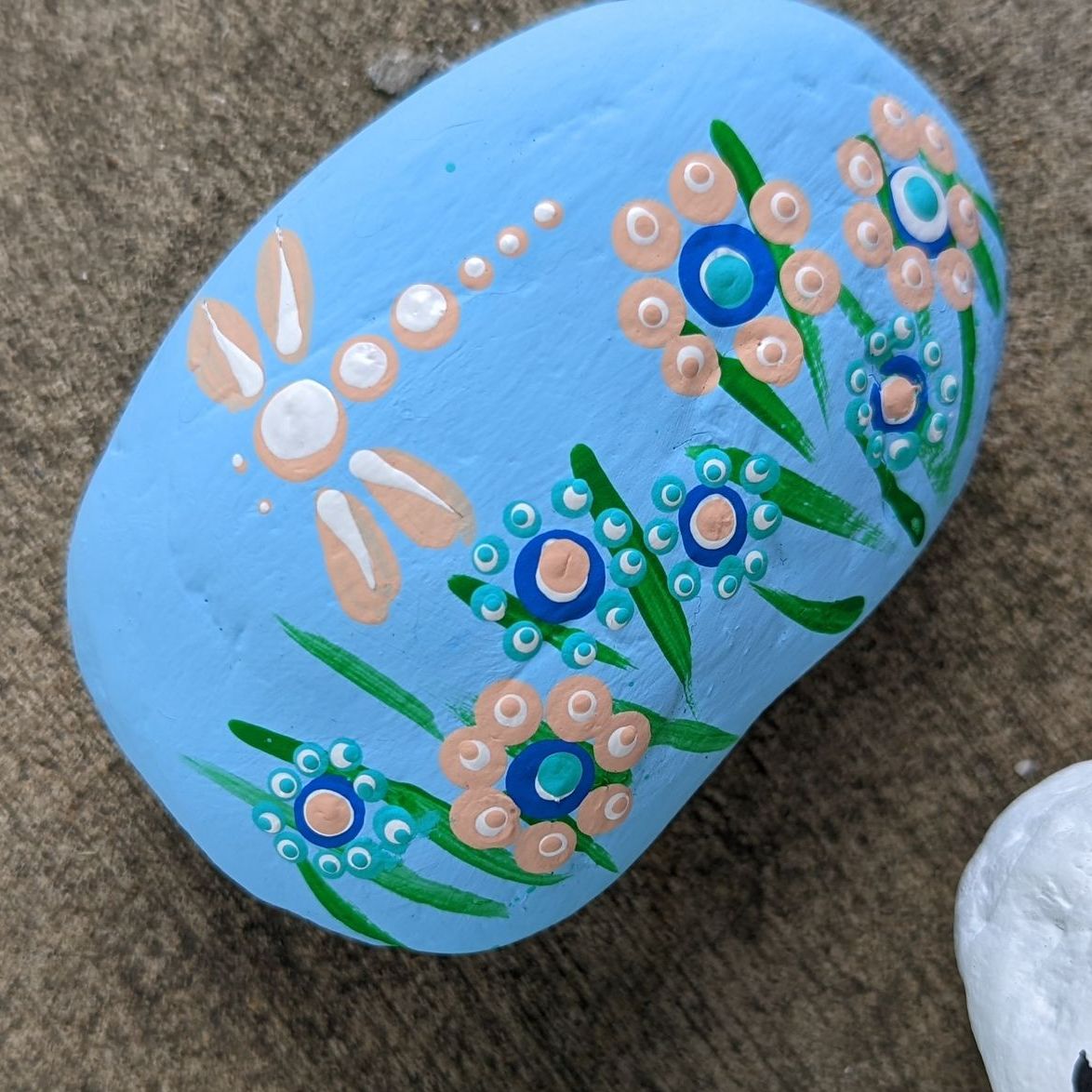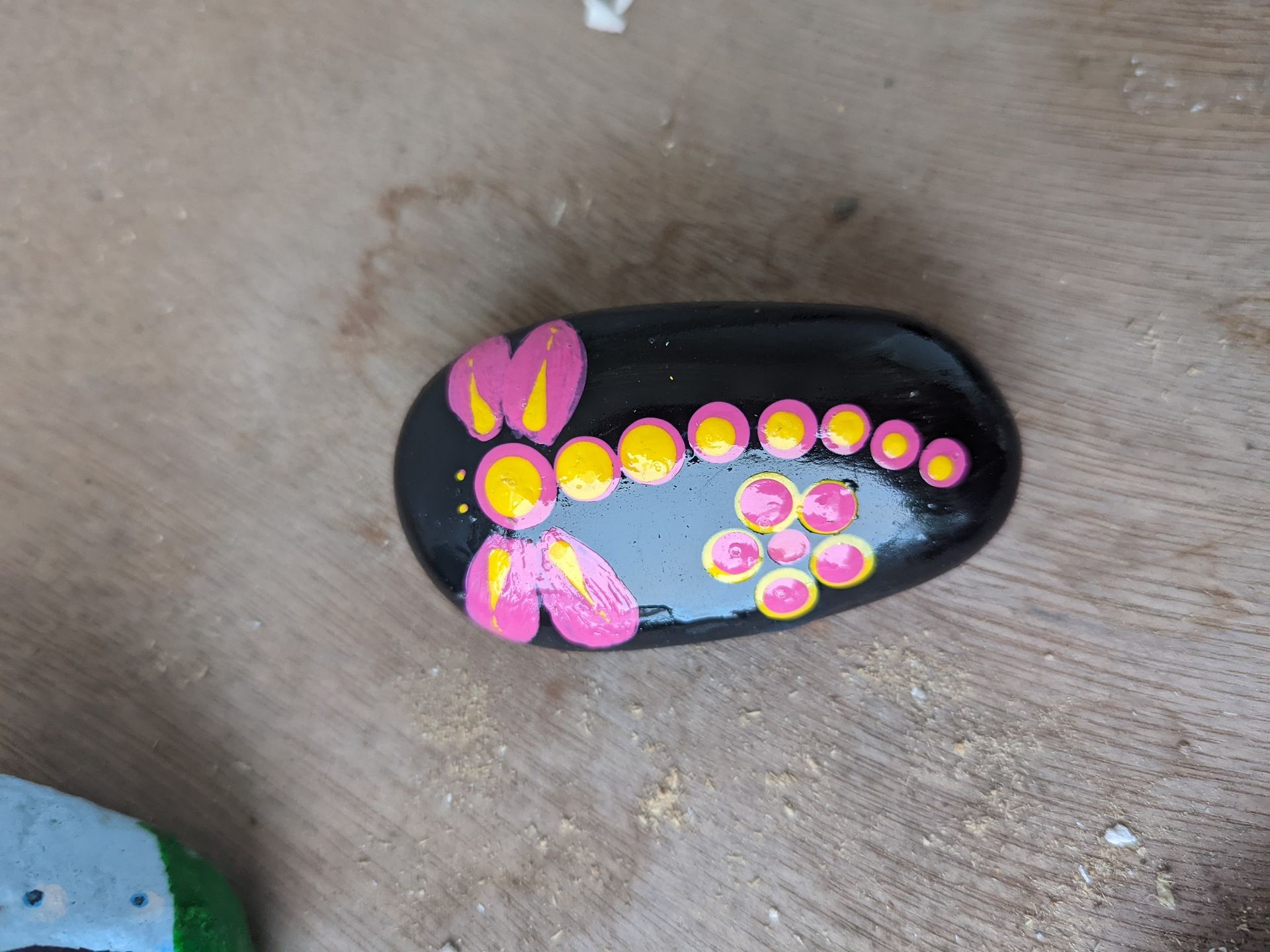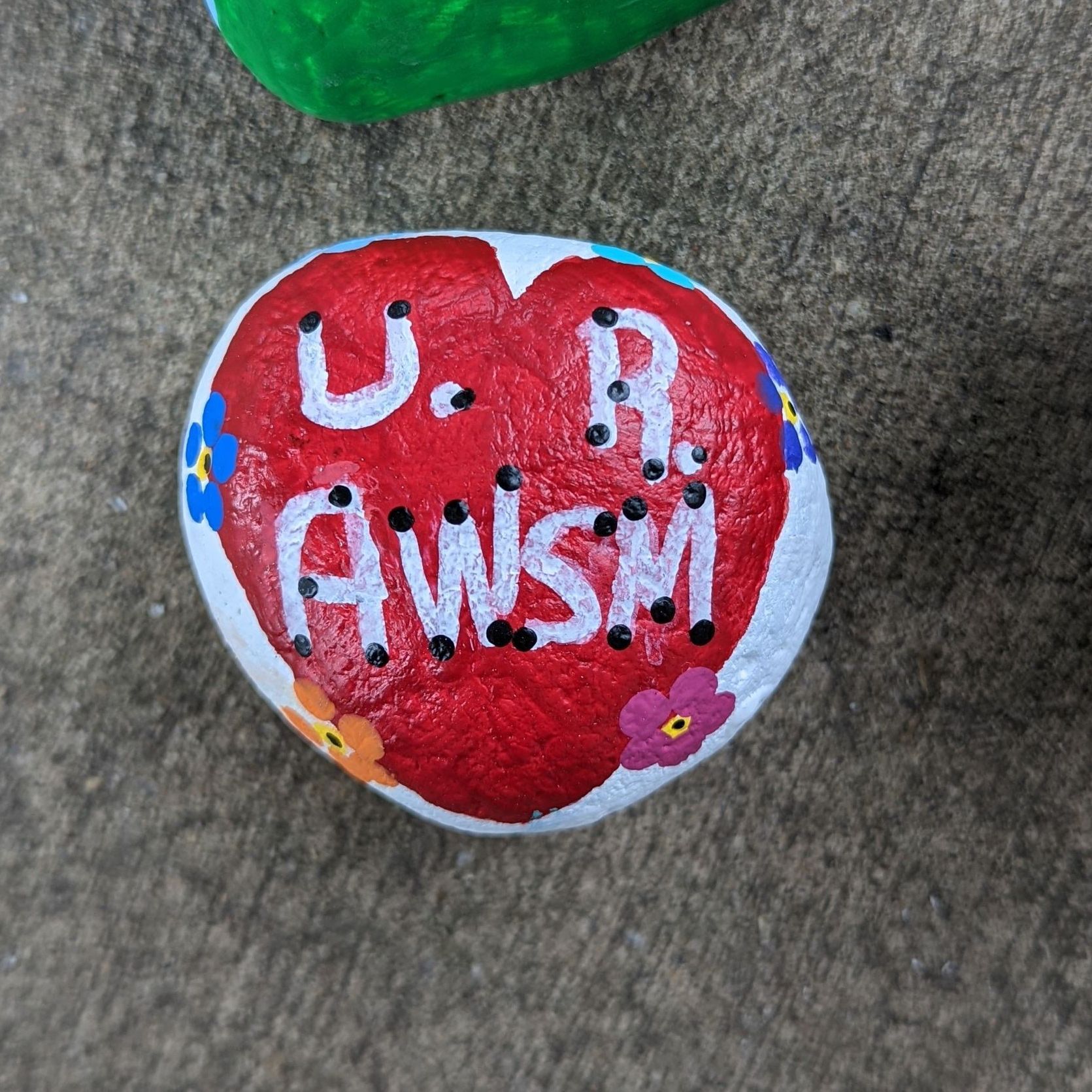 My husband and I recently moved to North East, MD and love living here. We can walk to 12 restaurants and 2 beautiful parks from our house. We walk our dog every morning and love sitting on our porches watching the world go by. On one of our first walks I found a rock peeking out from the landscaping the lines Main St. I did a little digging and found out I could move it or keep it. If I kept it, I was supposed to replace it. This was my first time finding a rock and I loved the idea and the community! I have since joined a few rock painting groups and enjoy painting some of my own. I usually hide them in my own town, but when I venture into other areas I will hide them there as well. And of course, I always have a rock or two with me in case I ever find one in the wild that I would like to add to my personal collection.