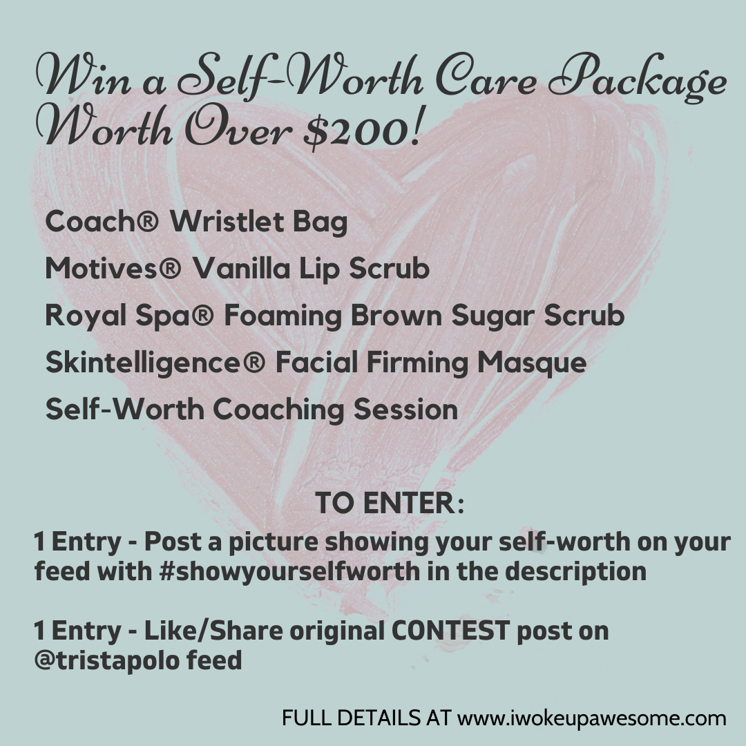 Earn 1 entry by posting a picture of yourself showing your self-worth with the hashtag #showyourselfworth